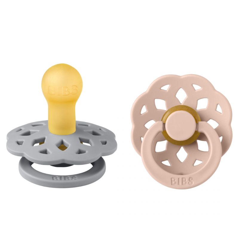 La tettarella in gomma naturale (caucciù) con forma a ciliegia è disponibile in 2 taglie: taglia 1 (0+ mesi), taglia 2 (6+ mesi).