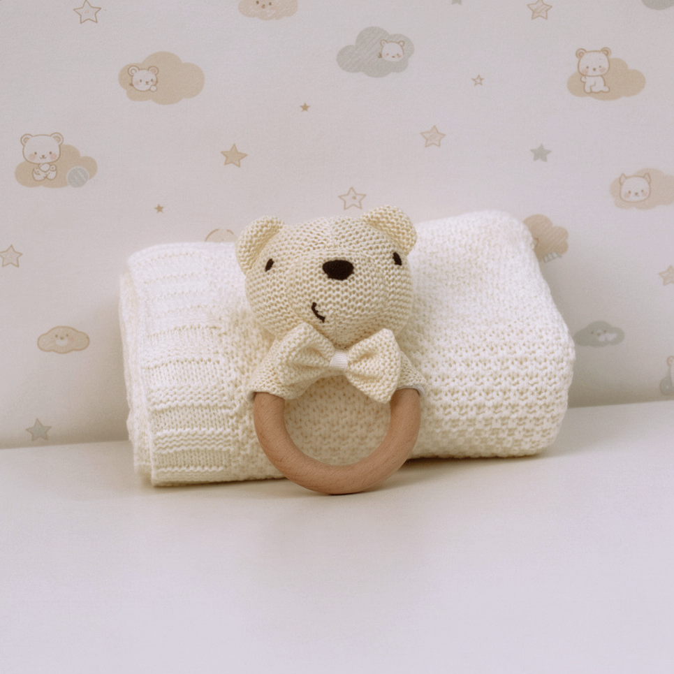 Il set più semplice per accompagnare la nanna con una soffice copertina e un sonaglino morbido. Un'idea regalo perfetta per una nascita, un baby shower o semplicemente per coccolare il tuo bambino.